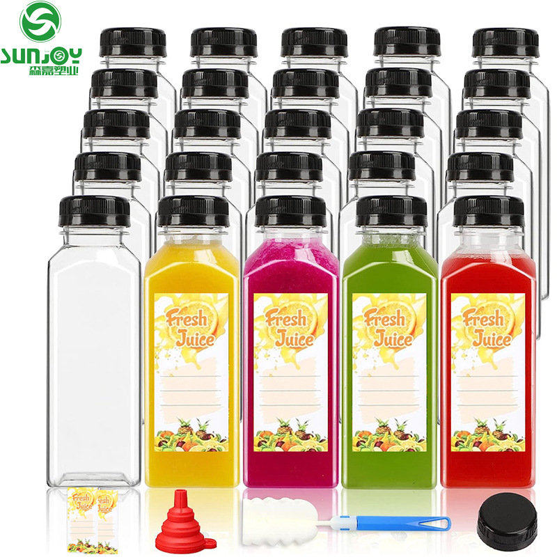 350 ミリリットル透明改ざん防止蓋付き正方形ボトルペットプラスチック正方形飲料ボトル 12 オンスジュースボトル