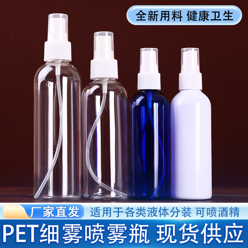 卸売り10-200ミリリットルpetプラスチックプレーボトル消毒アルコールボトル化粧補水細霧スプレーボトル