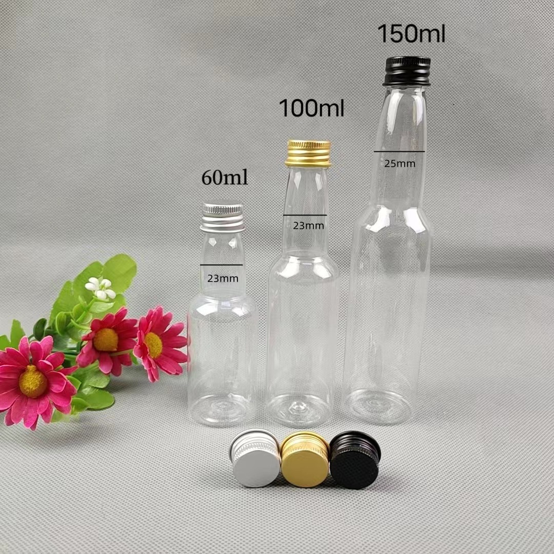 スポット 60ml100ml ペット透明アルミキャップボトルプラスチックスクリューキャップ液体ボトル化粧水ボトルプラスチックボトル