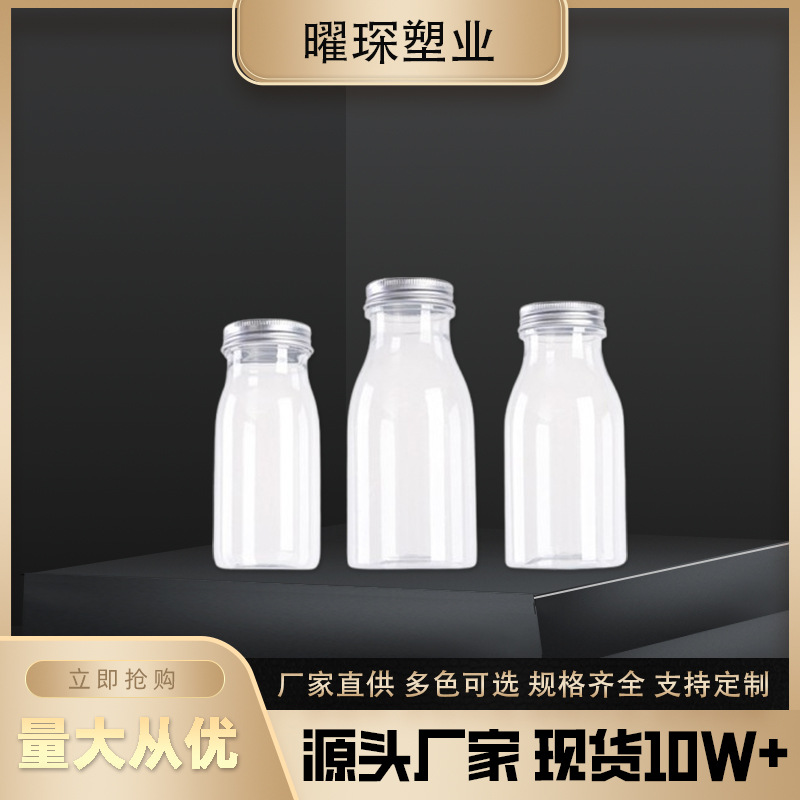 現物petプラスチック牛乳瓶蓋付き耐高温食品級使い捨て透明牛乳包装空瓶