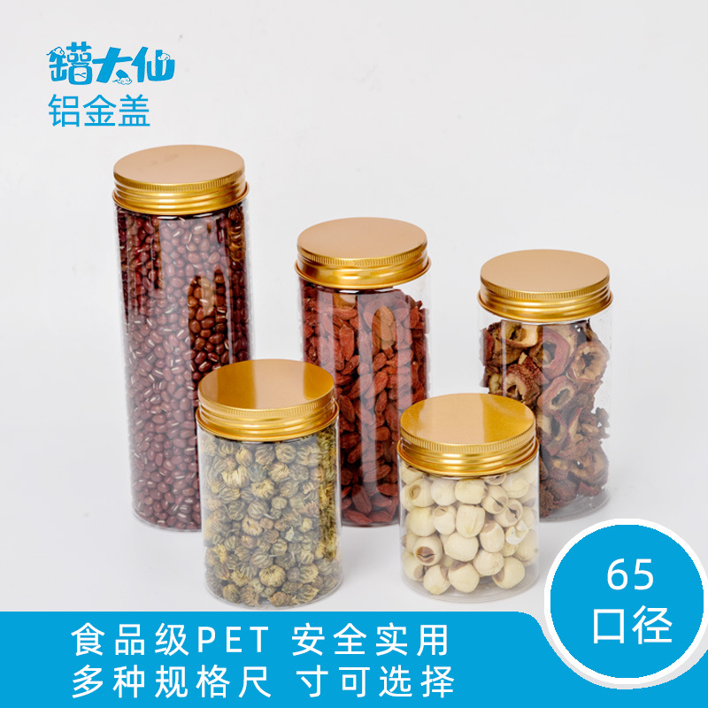 東莞メーカー65径プラスチック食品密封缶ドライフルーツ茶密封透明包装缶シルク印刷可能