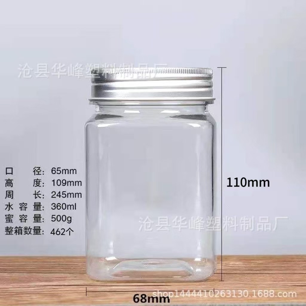 メーカー卸売り500g蜂蜜瓶petペットボトル広口瓶花茶缶透明方形瓶茶缶