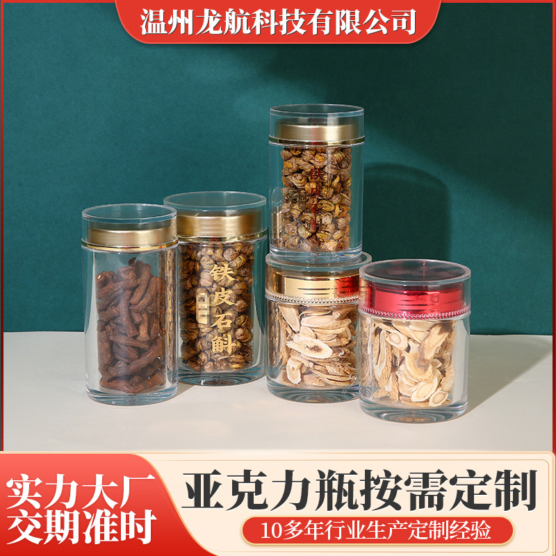 透明アクリルボトル 冬虫夏草、石斛、クコの実 健康食品ボトル 粉末、錠剤、カプセル プラスチックボトル カスタム