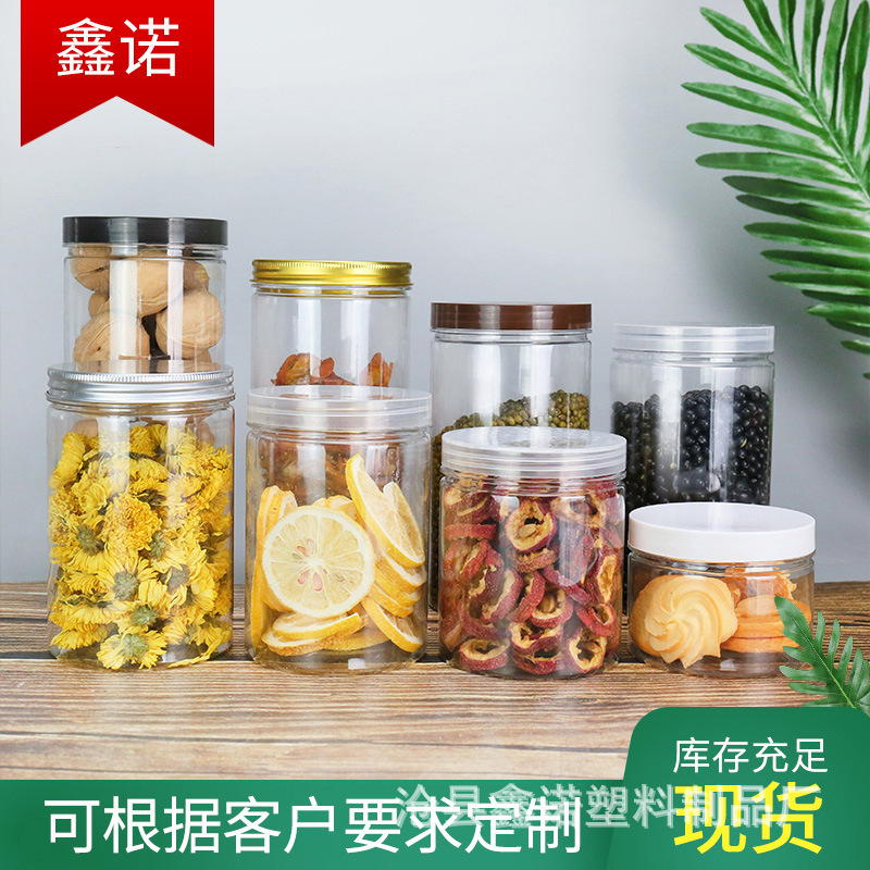 Pet貯蔵物プラスチック缶現物卸売り五穀雑穀貯蔵物密封缶生産アルミ蓋透明貯蔵缶