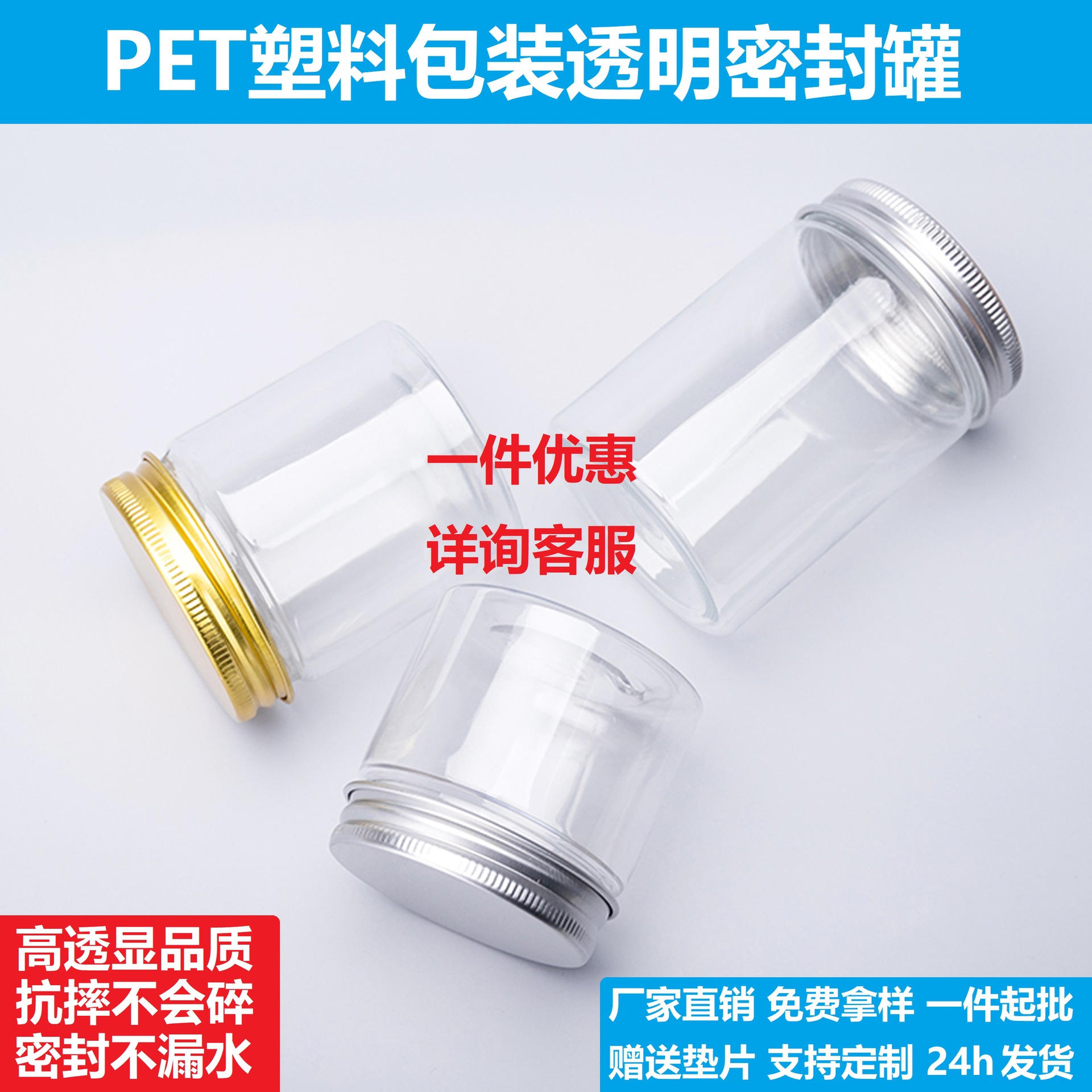 65口アルミ蓋付き透明プラスチック包装食品缶PET丸型プラスチック缶花茶ソフトキャンディボトル密封容器
