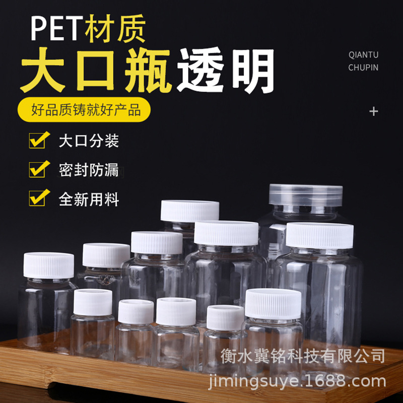 メーカー卸売りペットボトル透明大口瓶50 80 100ミリリットルpet液体粉末使い捨て分注瓶