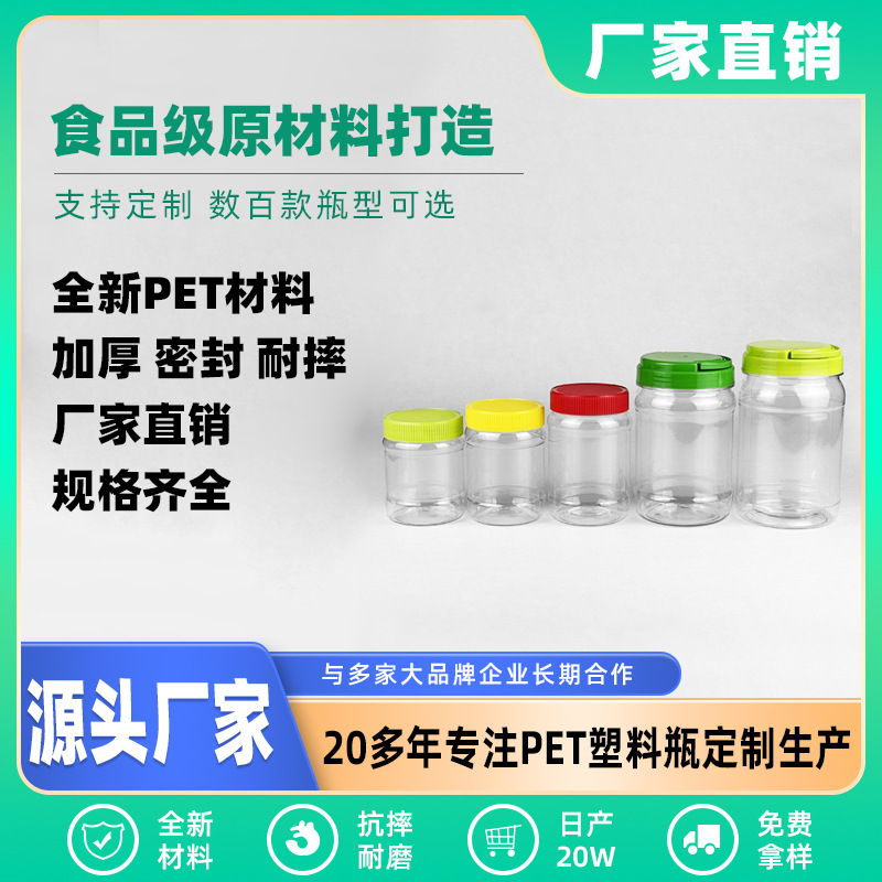 広口ボトルポータブル透明プラスチックボトルペット食品グレードのプラスチックスナックドライフルーツ穀物ラウンド包装ボトルメーカー