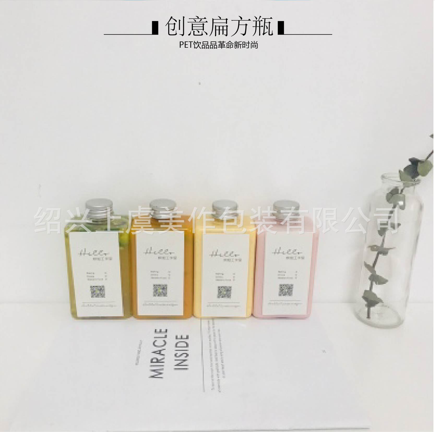300mlの新しいアイデアの偏平な瓶のプラスチックの透明な食品級のpet瓶のジュースのミルクティーの雑穀は分けて詰めます。