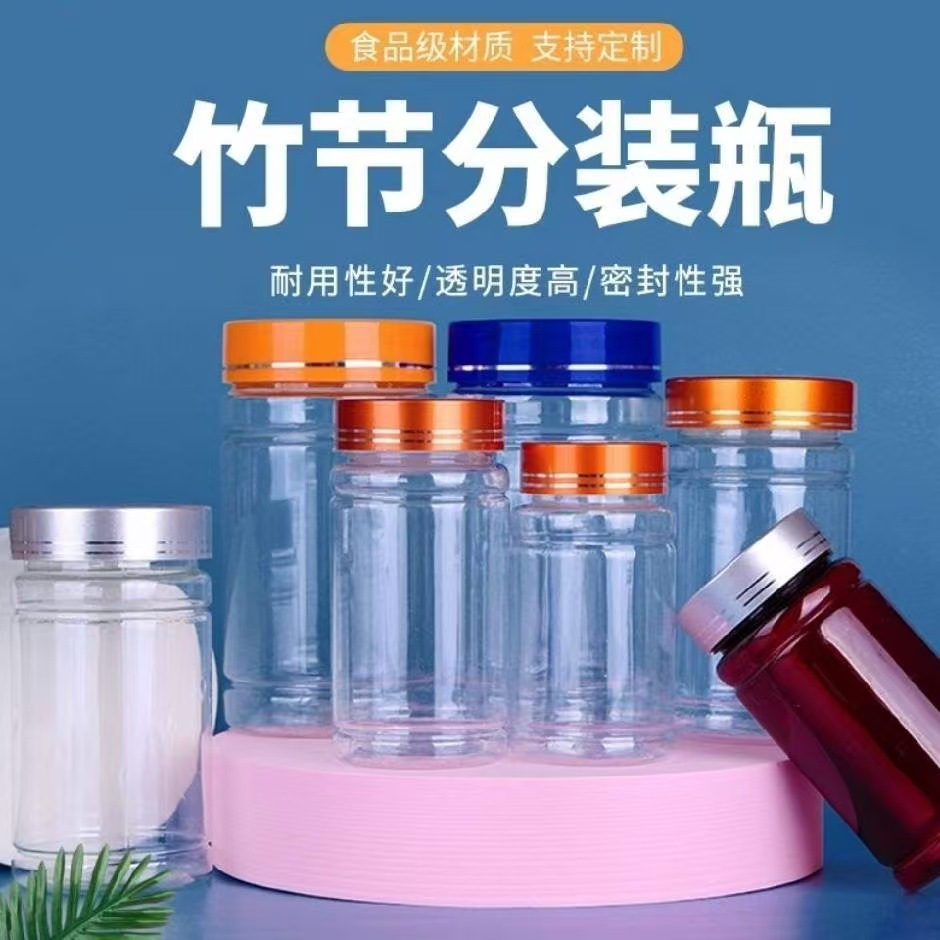100ml、150ml、200ml、300mlの透明プラスチック竹節型ボトル、健康食品カプセルボトル、固形サンプル分注ボトル