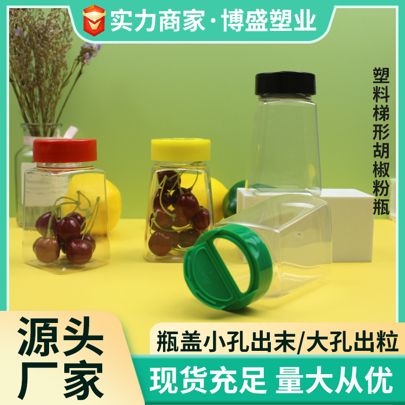Petフラップ包装ペットボトル胡椒粉瓶角型調味粉末瓶ゴマコーヒー蝶蓋包装瓶