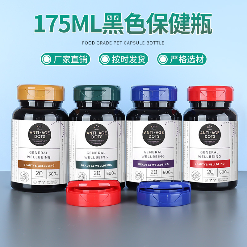 175mlブラックプラスチックボトル大容量広口ppフリップカプセル錠剤健康ボトル医薬包装ボトル