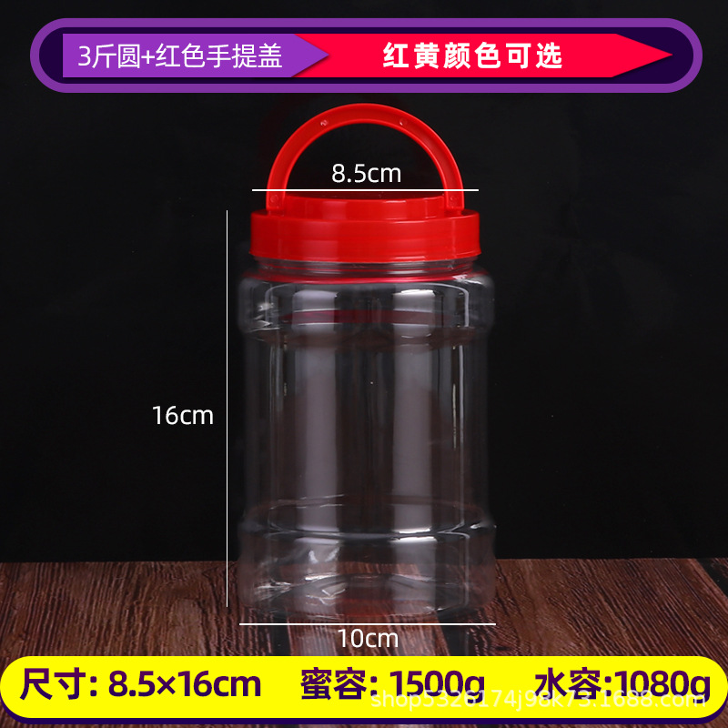 1.5斤の丸い蜂蜜瓶500グラムのごまみそ瓶のカプサイソース瓶はプラスチック缶を厚くした