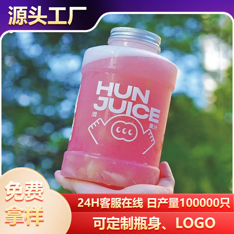 1000ml大容量手提げトンバレルネット赤ダンベルバレル飲料瓶使い捨てPET食品級ペットボトル