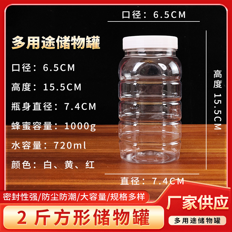 1.0kg 正方形の蜂蜜プラスチックボトル、内蓋付き、食品保存用ペットボトル、複数のサイズの保存容器メーカー