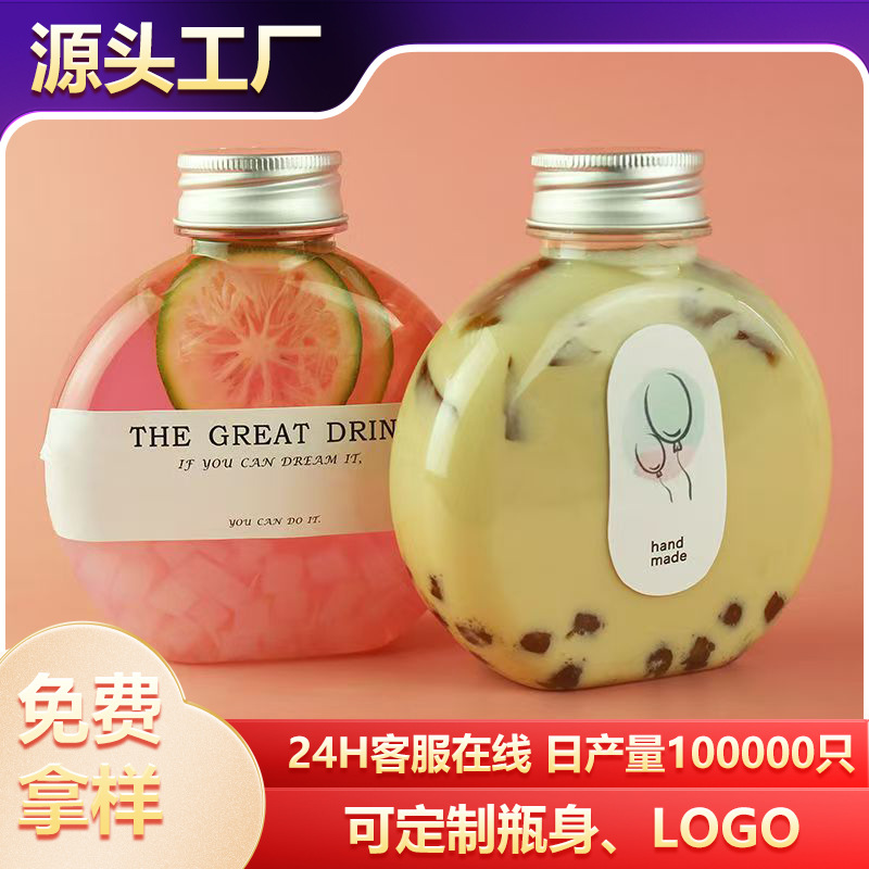 300 ミリリットル扁平飲料ボトルインターネット有名人透明ジュースミルクティーボトルテイクアウト蓋付き使い捨て食品グレードのプラスチックボトル