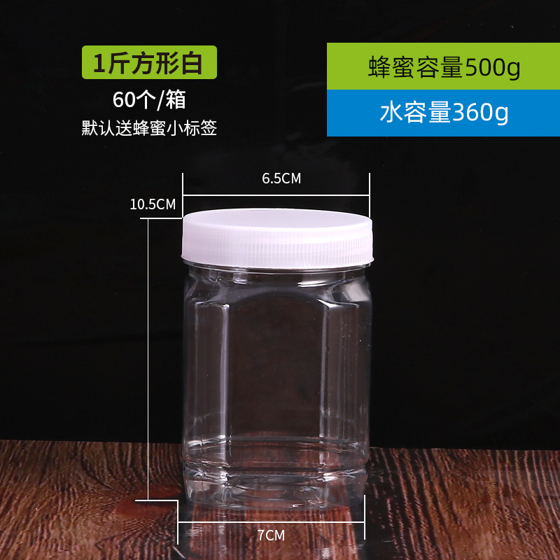 新商品は1斤を厚くしてハチミツの瓶を入れて500g透明に内蓋のプラスチックの瓶の食品の瓶のジャムの調味料の貯蔵の瓶があります。