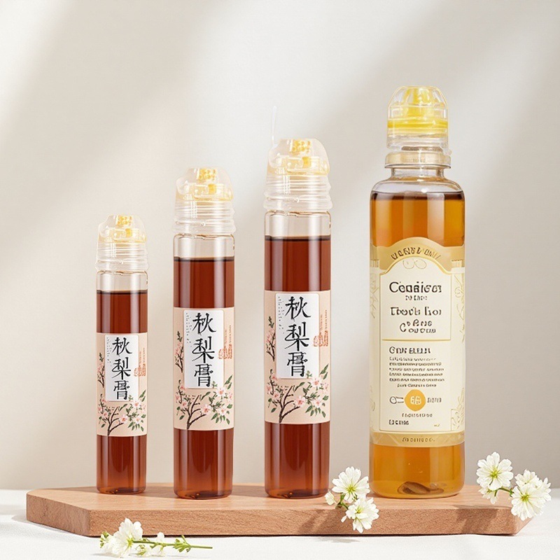 蜂蜜押出プラスチックボトル透明円柱梨膏瓶食品級pet小容量ノズル蓋膏滋押出瓶