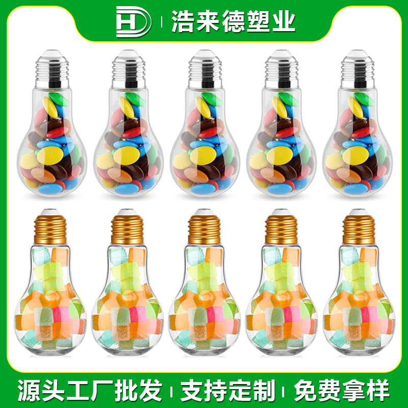 メーカー卸売使い捨てプラスチックボトルクリエイティブ電球ボトルクリスマスボトルキャンディー缶ジュース飲料ボトルアマゾン