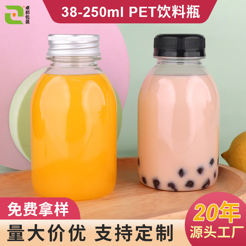 250ml使い捨て飲料瓶プラスチック透明蓋付きpet牛乳ジュース楊枝甘露ネット赤哺乳茶瓶