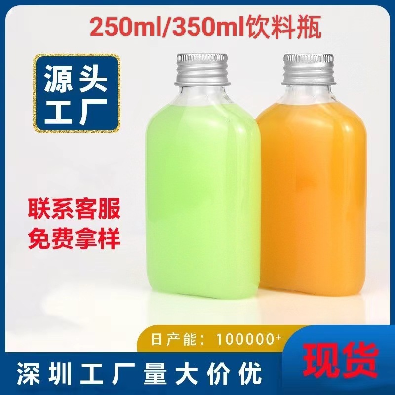 350ml透明プラスチックボトル使い捨て飲料ボトル商用petボトルジュース哺乳茶ボトル出前蓋付き
