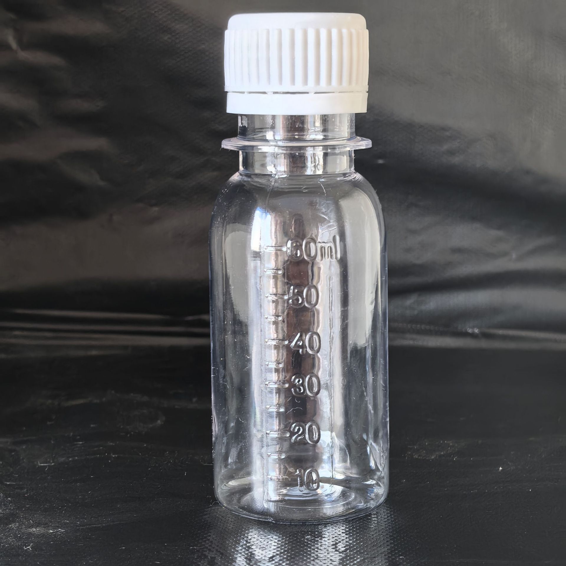 Pet 60ミリリットルの小さい口の透明なプラスチックの瓶のポリエステルの瓶は目盛りの水の瓶を持って瓶を分けて詰めます。