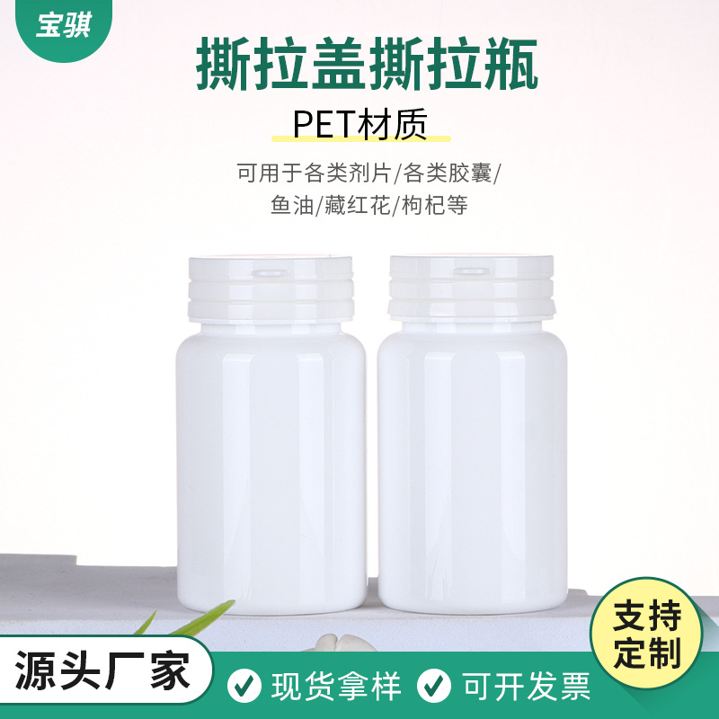 Pet白色引き裂き蓋100CC引き裂き瓶カルシウム瓶医薬カプセル瓶医薬カプセル瓶左旋肉アルカリ瓶