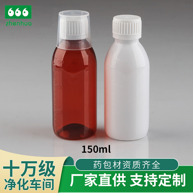 28口150ml白色pet薬用シロップ瓶経口液体ペットボトル計量カップ付き28口防犯プラスチック