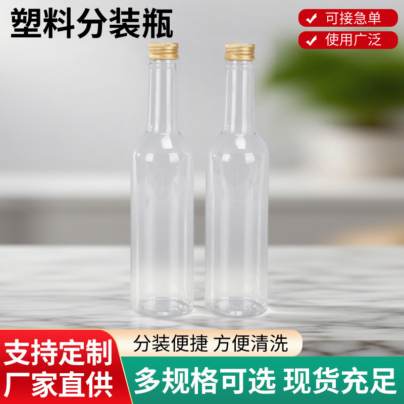 PET透明平口プラスチック液体包装瓶、ワイン瓶、詰め替え瓶、ネジ式密封飲料瓶、屋台用フルーツワイン瓶