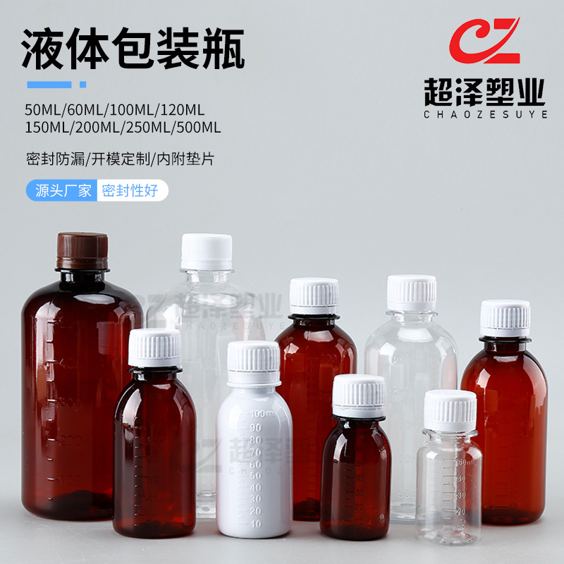 100ml目盛り付きプラスチックボトルメーカー卸売、遮光液体分注ボトル、pet150cc茶色プラスチックボトル