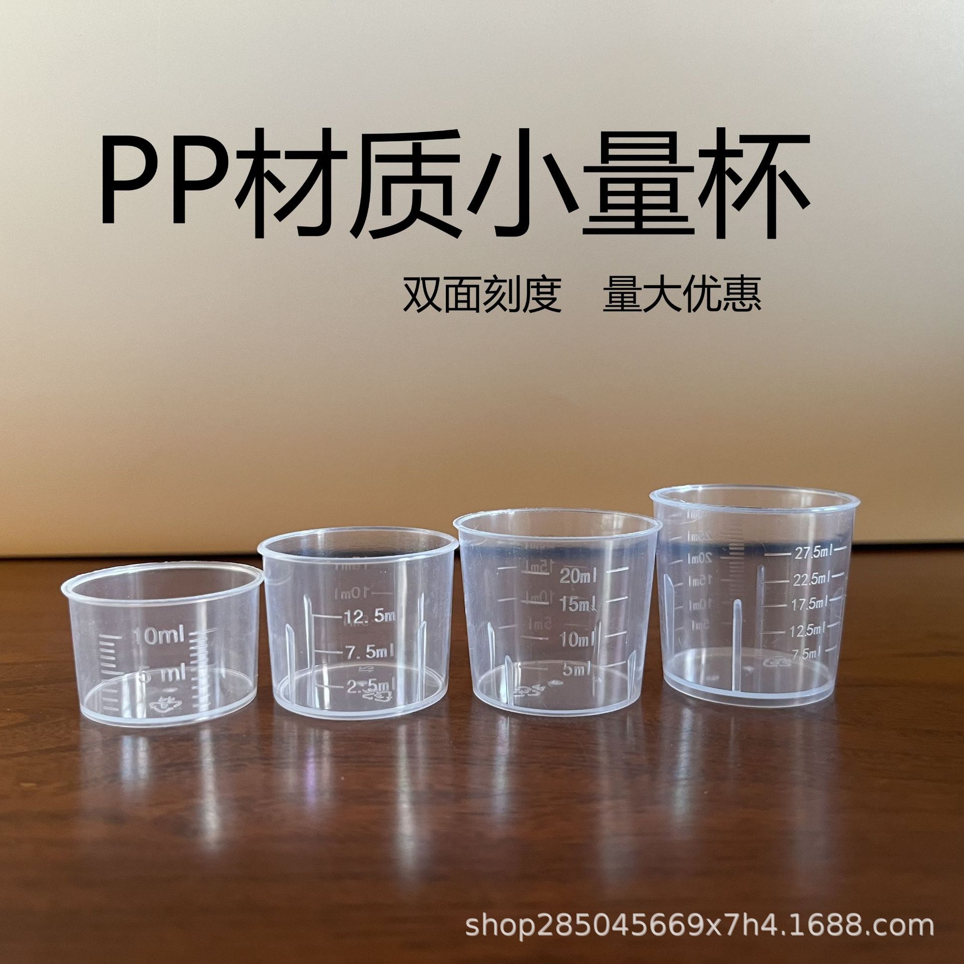 卸売りプラスチック小計量カップ両面付きスケール20ml 30ml 50ml 100ミリリットル品級ppカップ小ビーカー