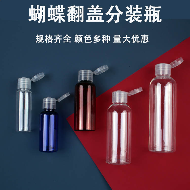 メーカー卸売pet透明ローションフラップボトル小さなプラスチックボトル化粧品分注ボトルバタフライカバーゲルボトル