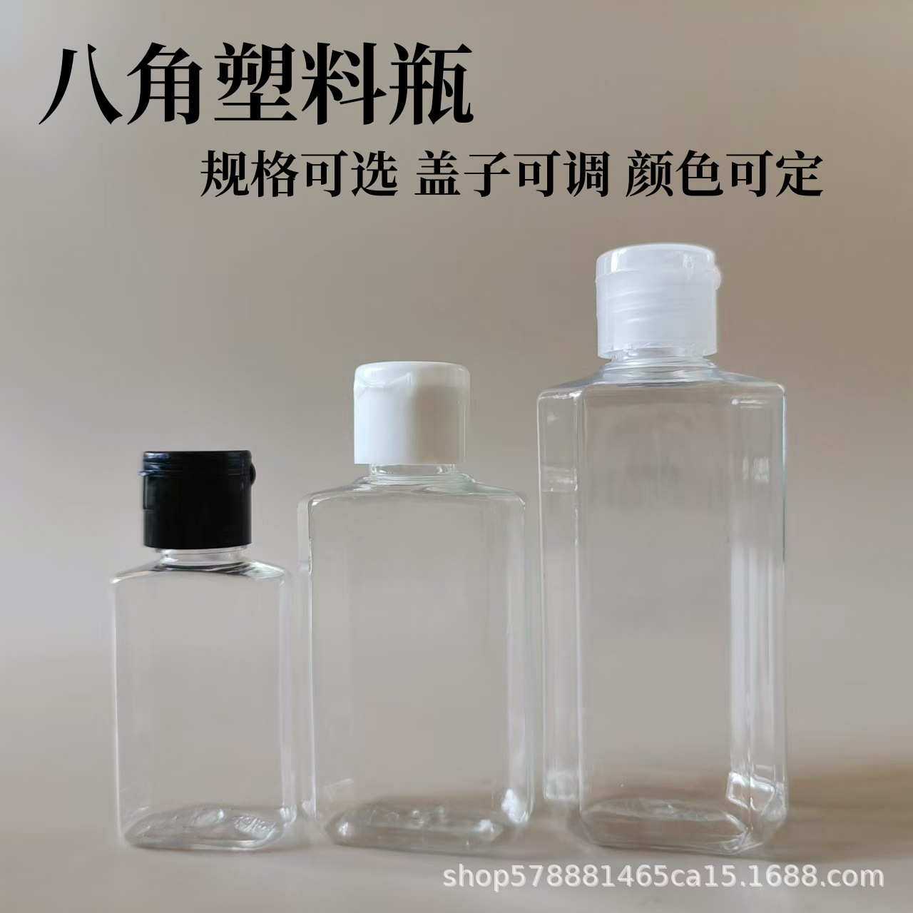 60ミリリットル透明プラスチックボトルフラットボトル八角形分注ボトルpet化粧品分注ボトル消毒水分注ボトル