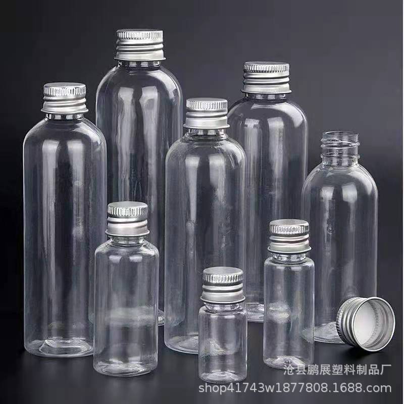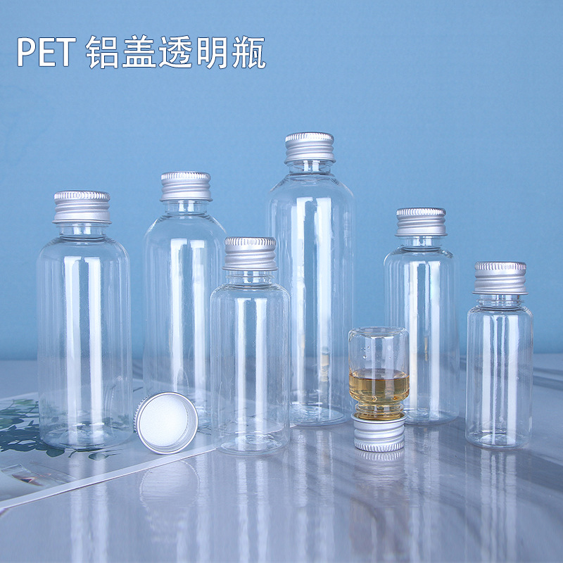 スポット卸売り5-100mlミリリットル透明小口細長いアルミ蓋ペットボトルpet密封瓶蓋付き液体瓶