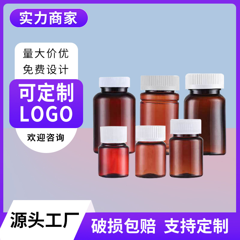 茶色petプラスチックボトル広口瓶圧旋蓋遮光瓶カプセルビタミンカプセル分注瓶卸売り