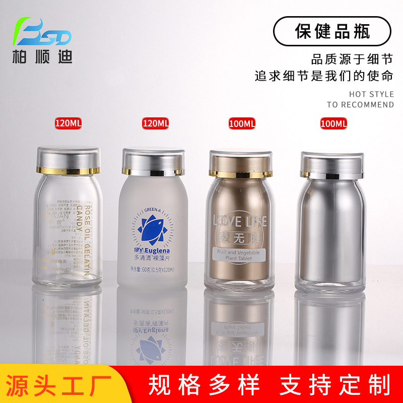 100mlのフロストカプセルの瓶60粒は健康食品の瓶のカルシウムの瓶の小さい薬の瓶を詰めてキャンディーの包装の瓶をつぶします。