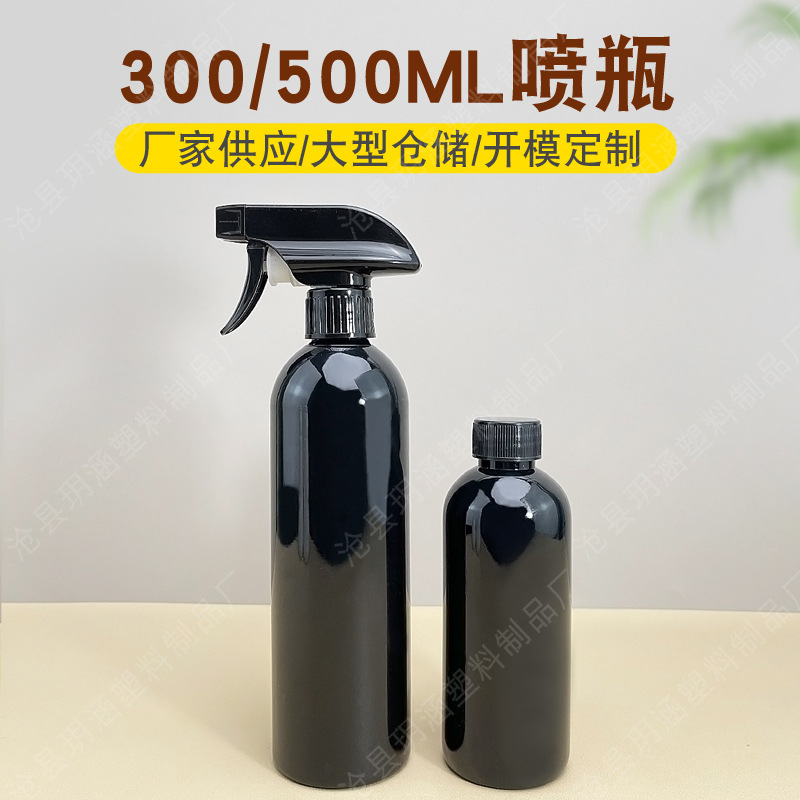 卸売り300/500ml黒色丸肩瓶petプラスチックスプレー瓶手ボタン式スプレーガン自動車コーティングスプレー瓶