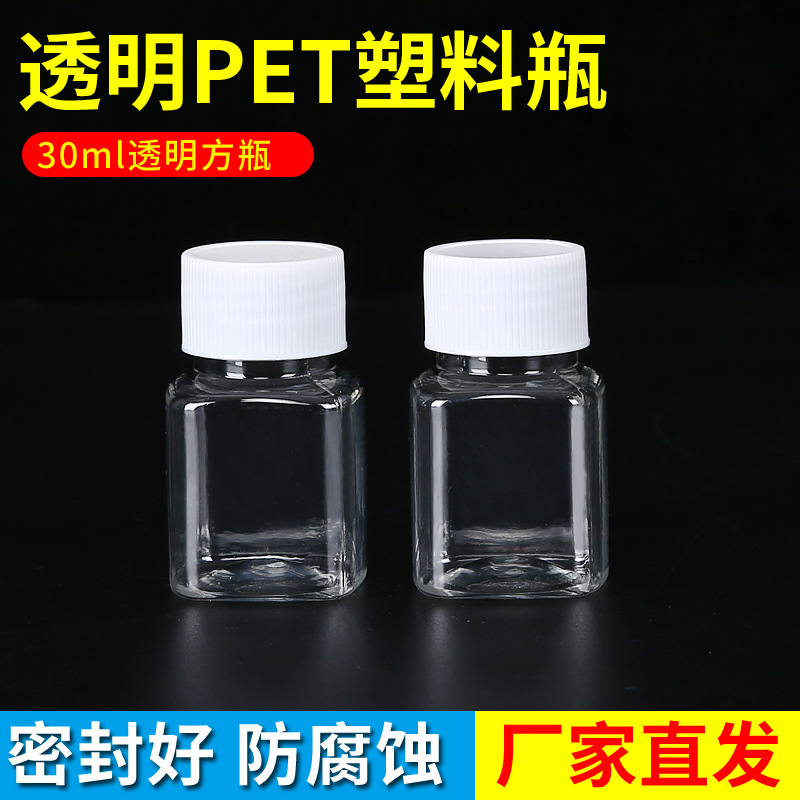 卸売りPETプラスチック大口透明角瓶30ミリリットル/ml/グラム/gペットボトルメーカー現物