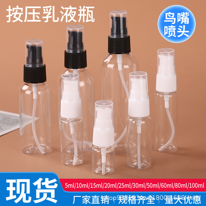 プッシュ式ローションボトル、透明くちばし詰め替えボトル、ペットペットボトル、旅行用ポータブルリキッドファンデーションポンプボトル詰め替えボトル