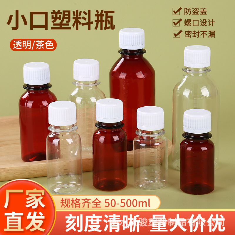 プロモーション厚い100mlプラスチックボトル透明petボトルポリエステルボトル小口液体ボトルスケール付き防犯カバー漏れ防止