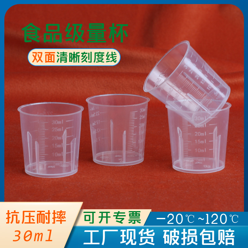 30ml小計量カップスケール付き透明分注プラスチック計量カップ蓋実験室用スケールクリア標準容量
