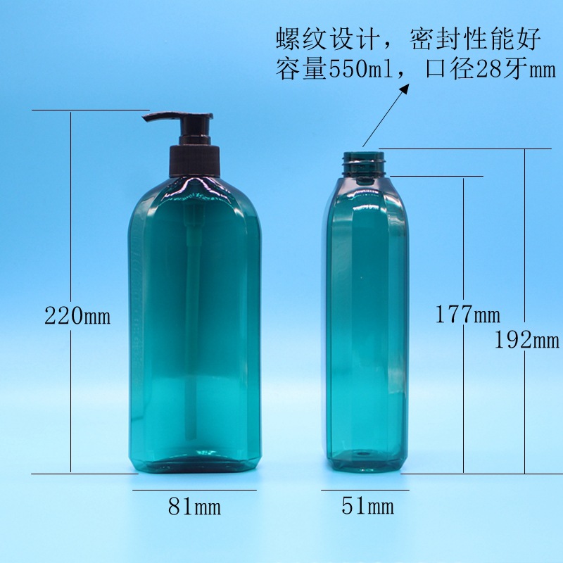 500ミリリットルのシャンプーのヘアケアの素瓶550mlの洗濯用品は瓶の体の乳液の瓶のpetの平たい瓶を押します。