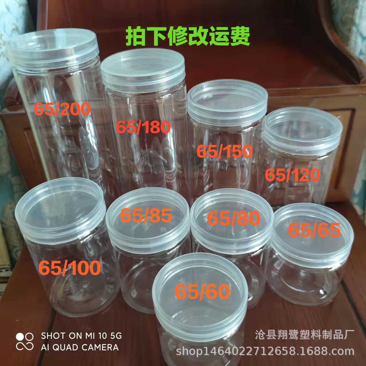 65径プラスチック缶密封缶pet透明密封スクリューキャップ蜂蜜缶150-600ml花茶缶