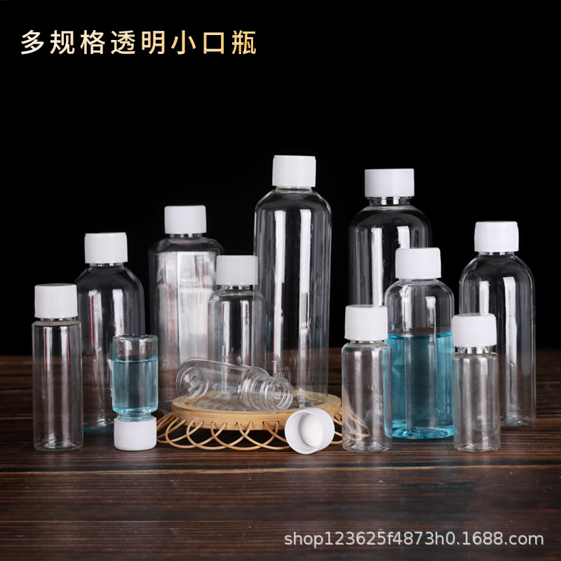 スポット卸売 10-300 ミリリットル PET 透明スリムプラスチックボトルローション詰め替えボトル密封された液体サンプリングボトル