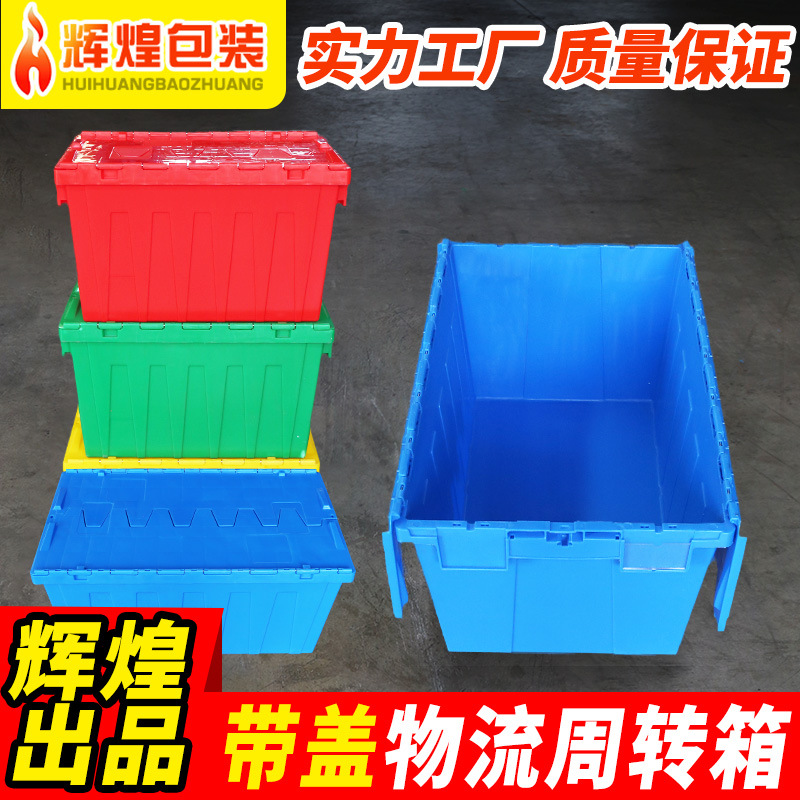 厚いプラスチック回転箱長方形蓋付き収納ゴム枠金物部品箱倉庫棚物流回転かご