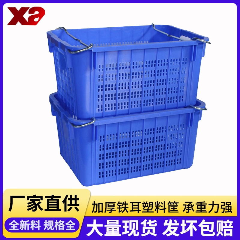 鉄耳付きプラスチックバスケット、多仕様野菜生鮮配送回転バスケット、輸送バスケット、衣類収納ボックス卸売
