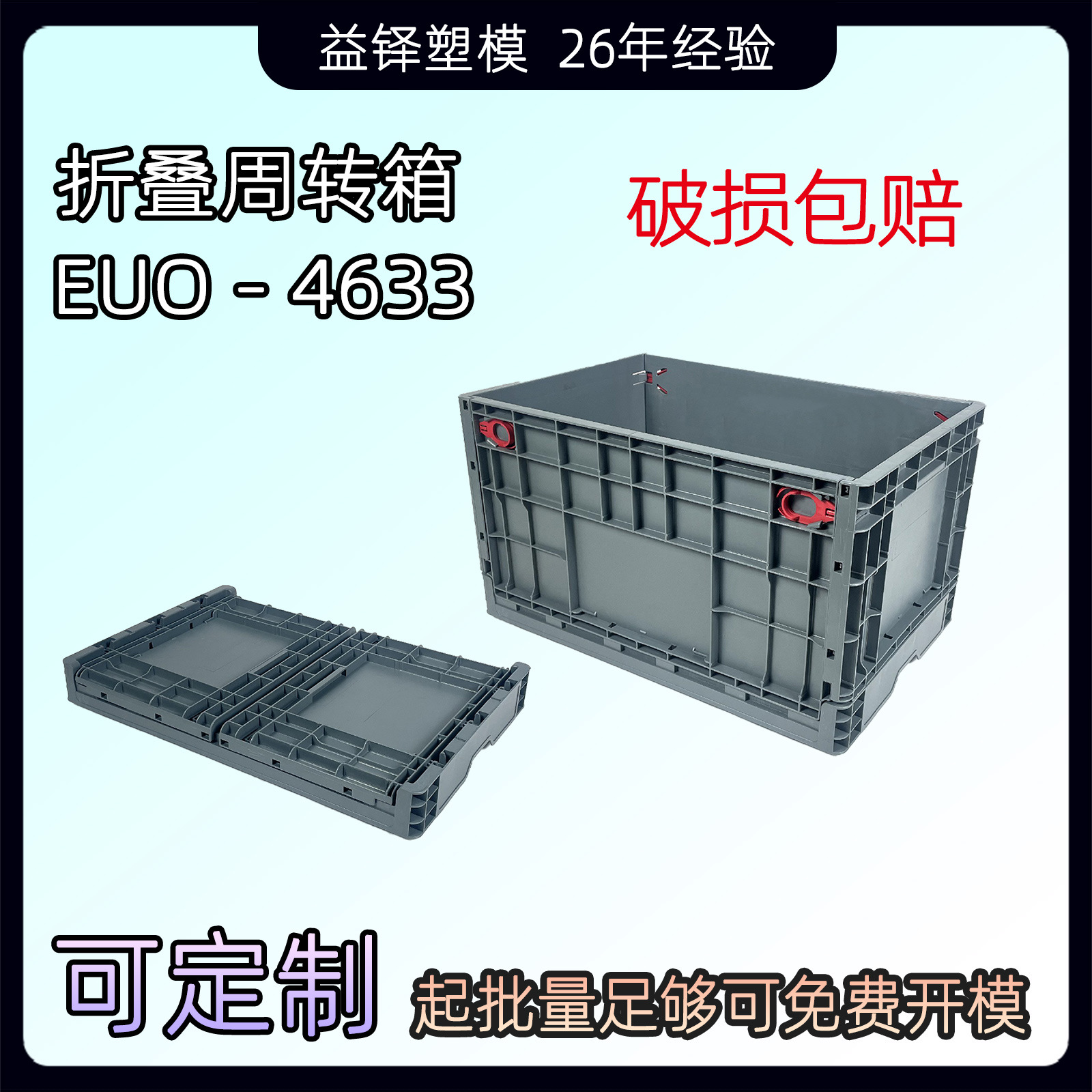 EUO 折りたたみプラスチックターンオーバーボックス自動車部品プラスチック物流トランスファーボックス強化底工場直販ヨーロッパ標準 463