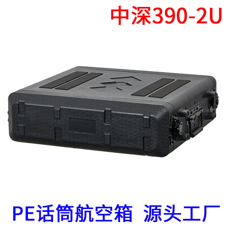 390 中深 2U マイクフライトケース PE プラスチック新しいシーケンサーアンプワイヤレスマイクレシーバーボックス