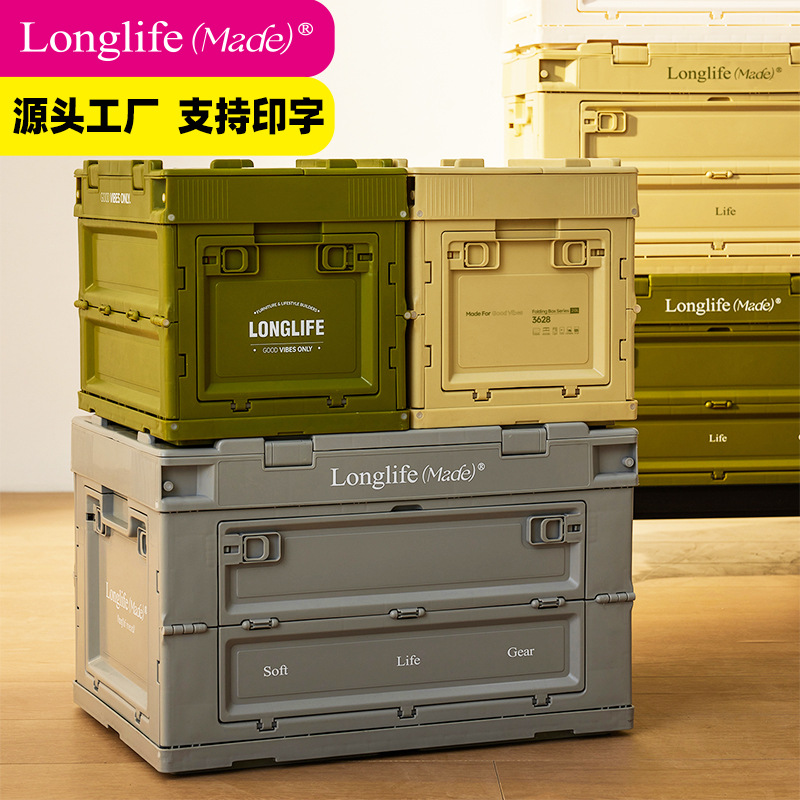 Longlife 折りたたみボックス pp 厚みのあるサイドオープン家庭用収納ボックスインダストリアルスタイル屋外キャンプ蓋付き