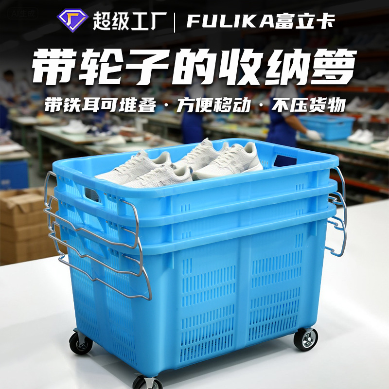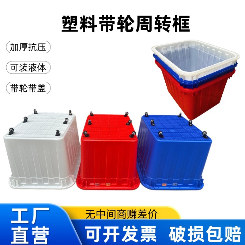 車輪付き厚みのある大型ターンオーバーボックス、プラスチック水槽、衣料品工場専用プラスチックバスケット、蓋付きプラスチックフレーム物流ボックス