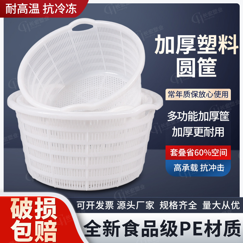 メーカー卸売りは丸いプラスチックかごの果物と野菜の生鮮スイカの大根を厚くしてかごのダブルハンドルのプラスチック回転かごを収納します。